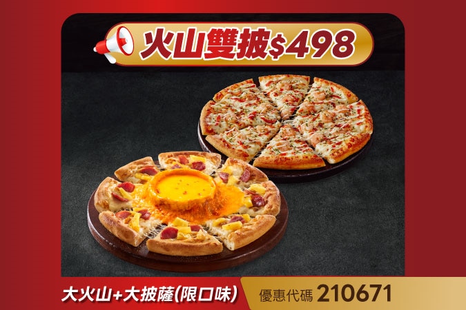 大火山(限口味)+大披薩(經典系列,限口味)NT$498起