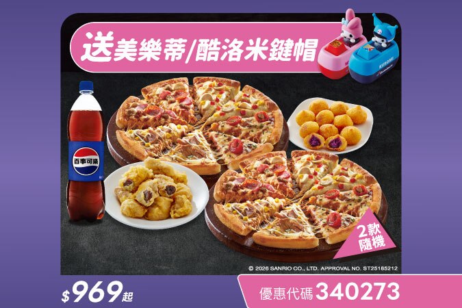2大披薩+地瓜球+杏鮑菇+大可樂+限定贈品(隨機)NT$969起